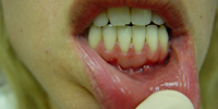 לעתים כתוצאה מצחצוח אגרסיבי, כתוצאה מעגיל שהוחדר מתחת לשפה התחתונה, או ממשיכה של השפה התחתונה ומתיחת ה"פרנום" ("פס עור" אשר ממוקם מתחת לקו השיניים ועלול לגרום לרווח בין השיניים או ל"בריחת" החניכיים מהשן באותו אזור), ניתן לראות נסיגת חניכיים באזור של שן אחת או שתיים כפי שניתן לראות בתמונות הבאות: