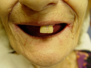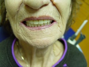 לפני – אשה מבוגרת מאד, אינה מתפקדת בלעיסה,שיניים קטנות וקצרות.