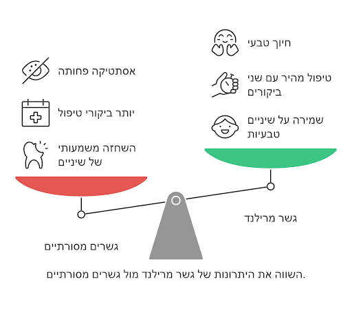 - עלות אטרקטיבית: גשר מרילנד הוא פתרון חסכוני יותר בהשוואה להשתלת שיניים.