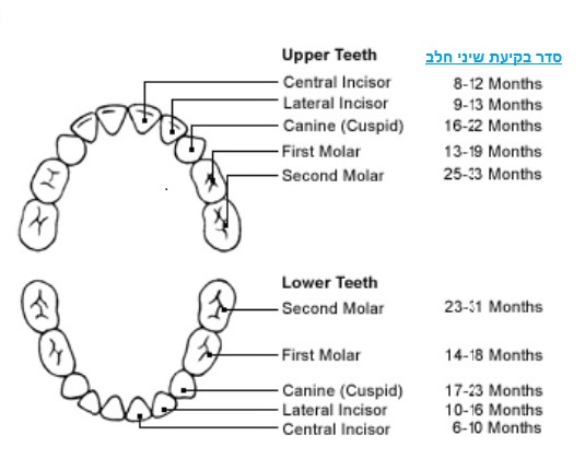 6 חודשים – 2 השיניים הקדמיות התחתונות (חותכות מרכזיות)