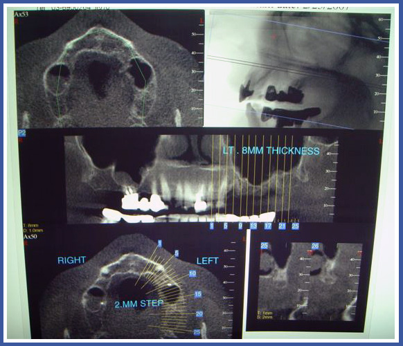 Обычно снимки компьютерной томографии (СТ) выполняются в дополнение к панорамным снимкам и перед имплантациями зубов для того, чтобы определить точное место, где будет установлен имплантант.