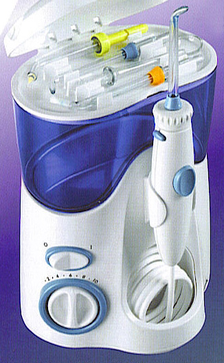“Water рick” – это электрический прибор, на конце которого расположена ручка, который выпускает сильную струю воды. Этой струйкой надо пройтись вдоль линии десен и между зубами. Сильная струя воды удаляет бактериальный налет, скапливающийся на зубах. Существует также «Oxiget», брызгающий водой, насыщенной пузырьками воздуха, и, по-моему, это отличная вещь для людей, во рту у которых установлены коронки или протезы.